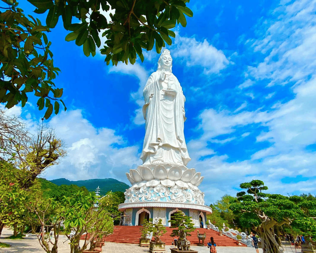 The Experience: We drive south through the Hai Van Tunnel, emerging into the bright, modern energy of Da Nang. We ascend the Son Tra Peninsula, where the giant Lady Buddha gazes out at the East Sea, protecting the fishermen. The Beach: We hit My Khe Beach. The sand is white, the water is warm, and the vibe is relaxed. It’s the perfect antidote to the heavy history of the previous days. Evening: Da Nang comes alive at night. The Dragon Bridge breathes fire (on weekends), and the Han River reflects the neon lights of a city on the rise.